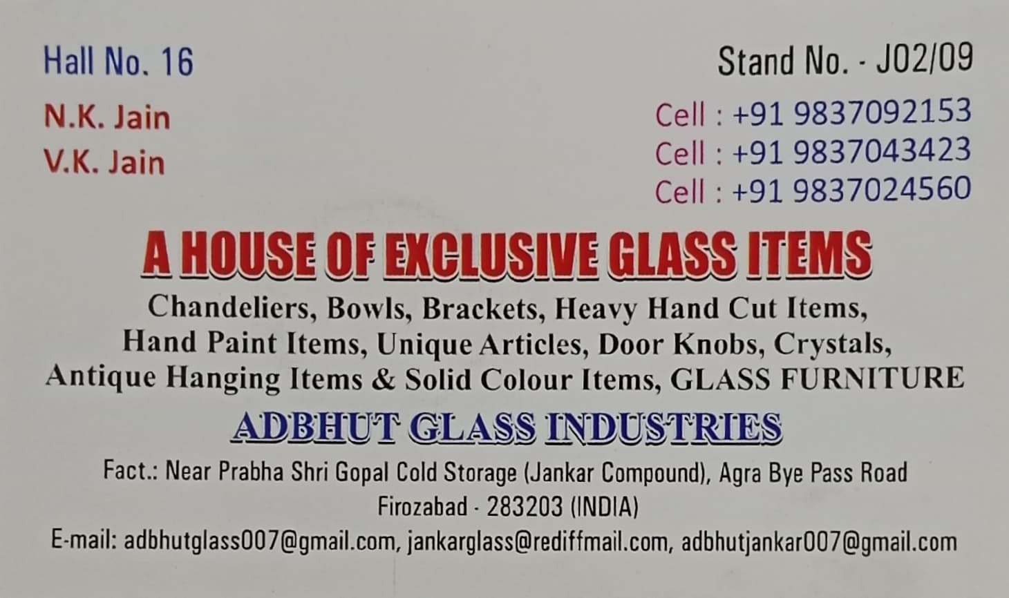 Adbhut Glass Industries was established in the year 2006 in Firozabad (Uttar Pradesh). Mr. Naveen Jain, the experienced Owner of the enterprise, has put in his best efforts to achieve unparallel success in the industry. The company is a well-known Decorative Glass Products Manufacturer, Exporter, and Supplier in India.
